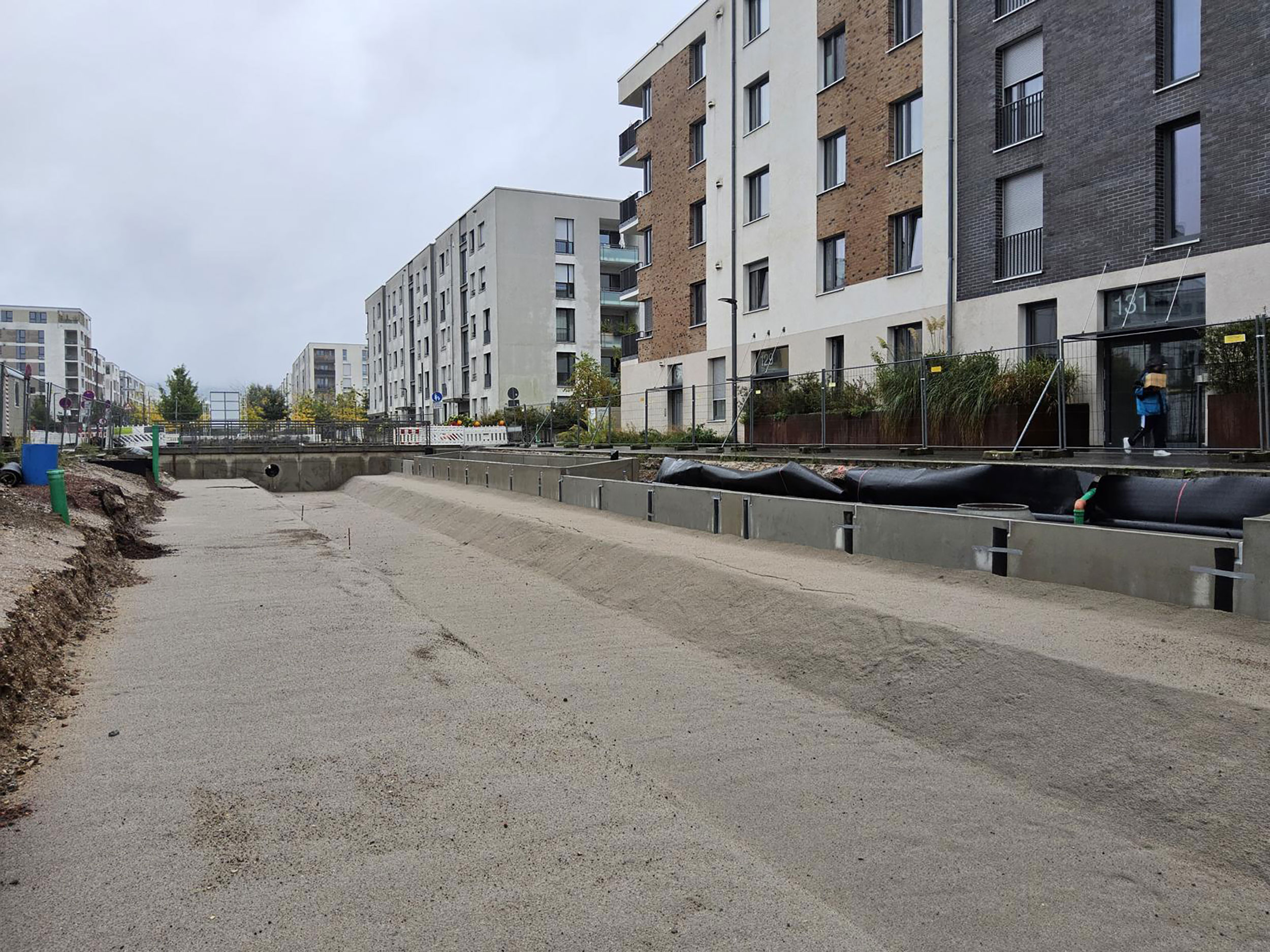Es handelt sich bei der Baumaßnahme um die Herstellung des zweiten Bauabschnitts der Teichwasseranlage „Langer Anger“ im Bereich zwischen Pfaffengrunder Terrasse im Osten bis zur Kumamotostraße im Westen. Der erste Bauabschnitt zwischen Schwetzinger Terrasse bis zur Pfaffengrunder Terrasse wurde bereits umgesetzt und befindet sich in Nutzung.